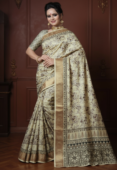 Soft tussar with embroidery. Festive gatherings, cultural functions