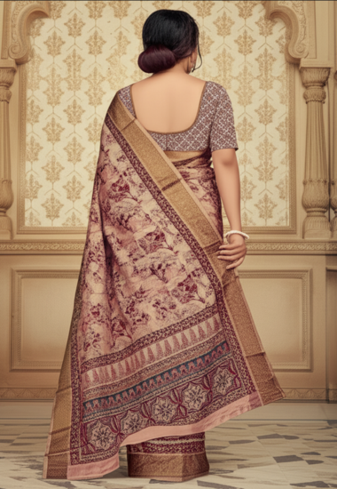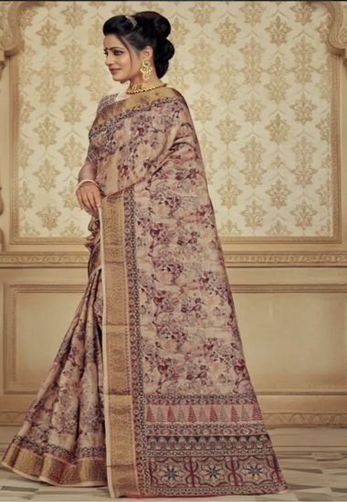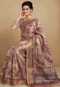 Beige with Pink Floral Motifs - Silk
