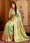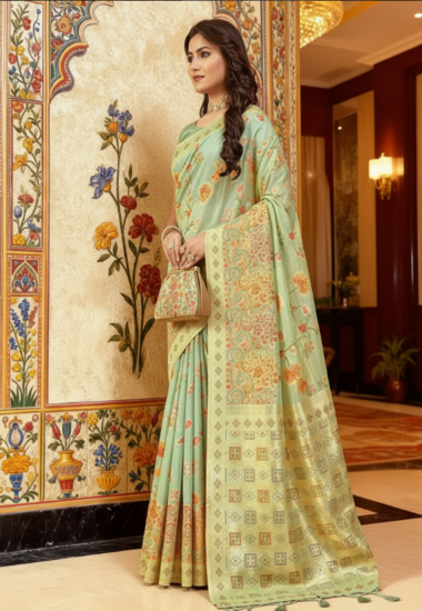 Glossy silk feel, festive look. Weddings, pujas, festive gatherings