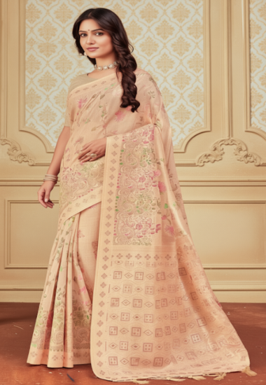 Glossy silk feel, festive look. Weddings, pujas, festive gatherings