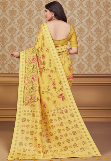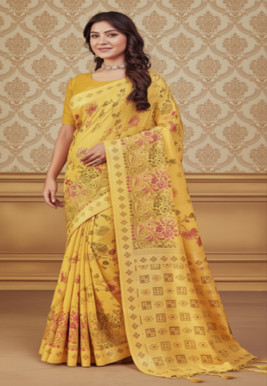 Glossy silk feel, festive look. Weddings, pujas, festive gatherings